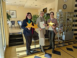 Ulrike Herrmann – König, Geschäftsführerin des Gästehaus am Weberplatz nimmt die Auszeichnung für ihr erstklassig geführtes Hotel mit 3 Sternen Superior der Deutschen Hotelklassifizierung entgegen. Das klassische Hotel liegt unweit des Stadtzentrums und ist sehr gut an das öffentliche Verkehrsnetz angeschlossen. Ein Geheimtipp ist das Restaurant, welches über den Fahrstuhl erreicht wird. Hier kann man sich mit echter italienischer Küche verwöhnen lassen. Vertreter des DEHOGA Sachsen und der IHK gratulieren ganz herzlich zur Auszeichnung mit 3 Sternen Superior der Deutschen Hotelklassifizierung.