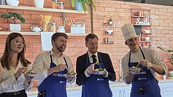 Ein besonderes Highlight am DEHOGA-Gemeinschaftsstand war der Besuch von Michael Kretschmer. Der Ministerpräsident ließ es sich nicht nehmen, gemeinsam mit Ausstellern und jungen Talenten etwas Leckeres zuzubereiten und zu verkosten. Der persönliche Austausch unterstrich die Bedeutung der Gastronomie und Hotellerie als Ausbildungs- und Zukunftsbranche in Sachsen.