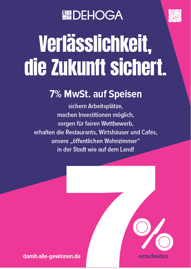 Wir als DEHOGA Sachsen werden nicht locker lassen, bis die 7 % endgültig beschlossen sind. Das Gesetzgebungsverfahren ist zwar langwierig, aber wir bleiben mit voller Energie dran. Denn eines ist klar: Es geht jetzt um Verlässlichkeit!