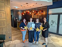 Das stilvolle Boutique Hotel Indigo in Dresden wurde wiederholt mit 4 Sternen der Deutschen Hotelklassifizierung ausgezeichnet. Das Team um Patricia Gangfuß, Hotel Managerin und Marian Drummer, Office Admin zeichnet sich durch besondere Herzlichkeit und persönlichen Service aus. Touristen und Stammgäste lieben das Flair zwischen Barock und Industriekultur im ausgezeichneten Hotel. Die Zimmer sind individuell und mit zeitloser Eleganz gestaltet und begeistern Besucher immer wieder. Der DEHOGA Sachsen und die IHK Dresden gratulieren ganz herzlich zur Auszeichnung mit 4 Sternen der Deutschen Hotelklassifizierung.