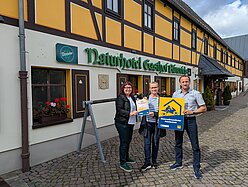 Auf dem Foto: Katrin Kempe, Inhaberin Naturhotel Gasthof Bärenfels mit Thomas Kubin ADAC und Katrin Kerpa , DEHOGA Sachsen