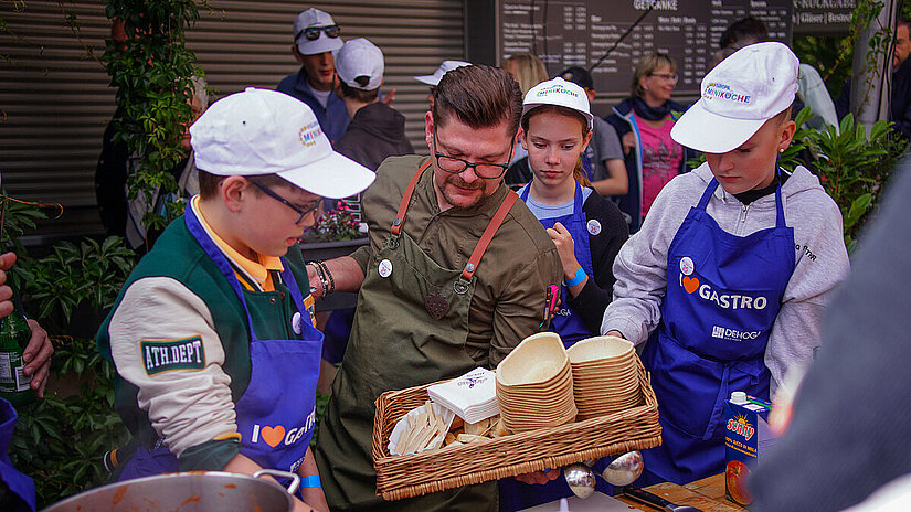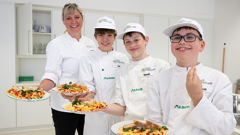 Ein Highlight des Tages war die spannende Team-Challenge, bei der das beste Team ermittelt wurde. Die Miniköche der Oberschule in Pieschen-Dresden konnten sich am Ende über den verdienten Sieg freuen. Zu den Herausforderungen zählten das Küchen-Kenner-Quiz, Ping-Pong im Eierkarton sowie die kreative Aufgabe "Vitamin-Kunst".