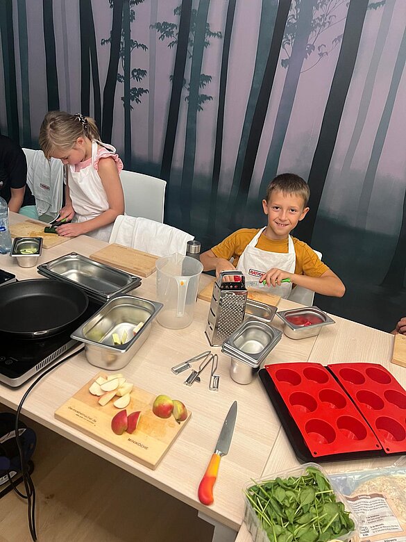 Ob in der Schule oder zu Hause: Gemeinsam schnippeln, rühren, probieren – und dabei gesunde Ernährung spielerisch entdecken! Unsere Workshops bringen präventive Ernährungsbildung direkt zu Ihnen und zeigen, wie viel Spaß frische Zutaten machen können.