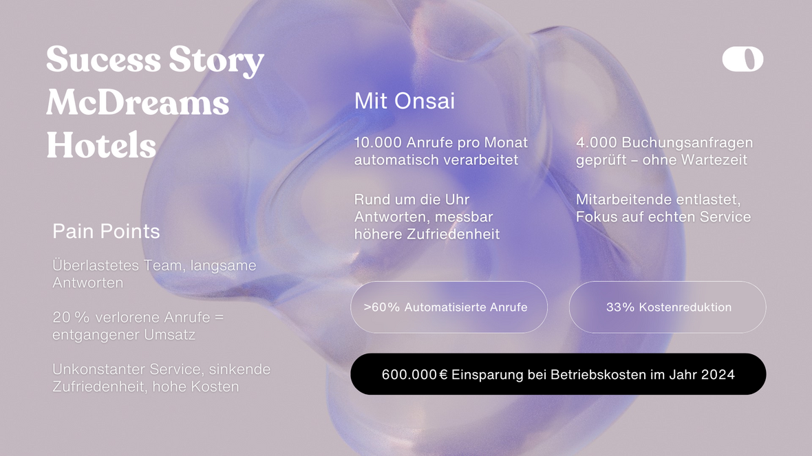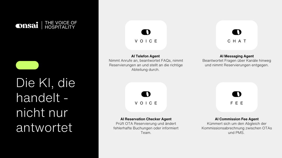 Die AI-Lösung Onsai hat den Branchen-Award für Start-ups 2025 des Hotelverbandes Deutschland gewonnen. Eine Jury aus IHA-Vertretern und Venture-Capital-Experten hat aus den eingegangenen Bewerbungen vier Start-ups ausgewählt, die jetzt um den Gewinn „pitchen“ durften.