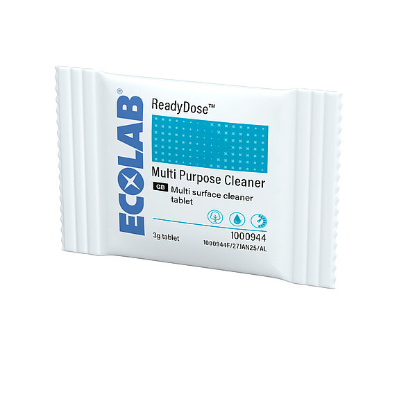 ReadyDose™ macht tägliche Reinigung einfacher denn je: kleine Tabs, große Wirkung. Einfach nachfüllen, Tab hinzufügen, auflösen lassen – fertig. Die Tabs sorgen für exakte Dosierung, sparen 84 Prozent Lagerfläche, reduzieren 99 Prozent Kunststoffabfall und erleichtern Transport und Handhabung.