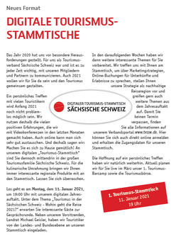 - Vorstellung der weiteren Themen der Veranstaltungsreihe (Tourist-Infos – 20.01.21, Online-Buchung – 25.01.21, Online-Ticketing 01.02.21, Nachhaltigkeit 03/21, Tourismusnetzwerk Sachsen 03/21)