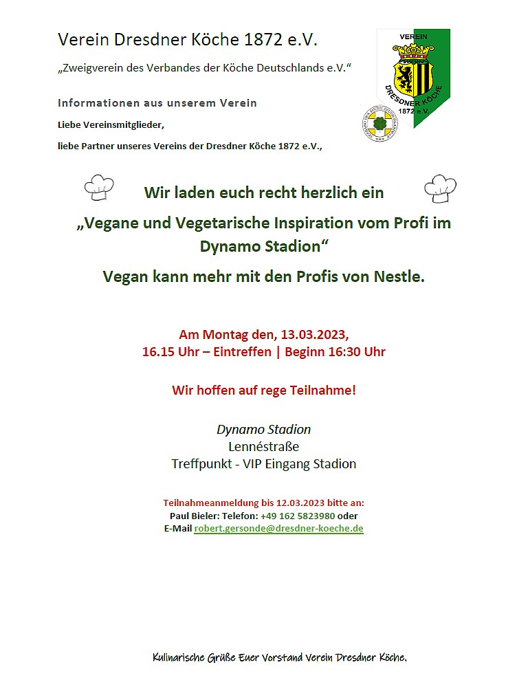 Verein Dresdner Köche: Vegane und Vegetarische Inspirationen vom Profi im Dynamo Stadion